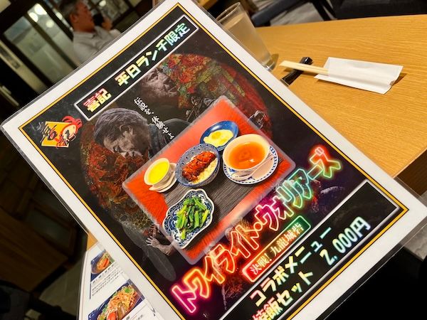 話題としてもう一つ。香港映画史上空前のヒットとなった「トワイライト・ウォリアーズ 決戦!九龍城砦」に登場する「叉焼販」のコラボメニューがまだありました。密入国者で組織に追われた男が逃げ込んだ九龍城砦の伝説的リーダーにふるまわれた「叉焼飯」。しかも目玉焼き別添え。印象的なシーンの数々に思いを馳せながら…。