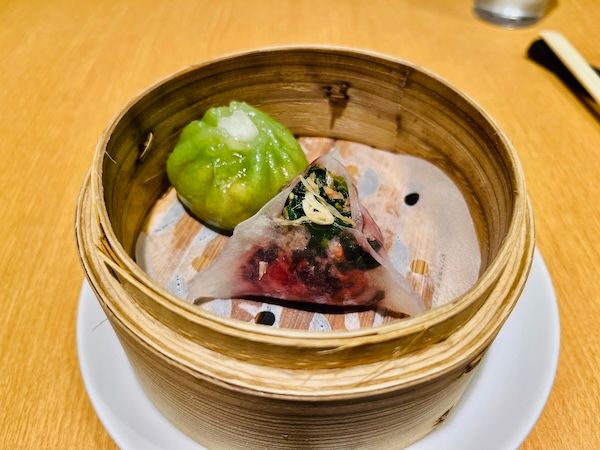 セットには点心も付いています。ビジュアルも美しいヒユナ入りの点心。ヒユナって初めて聞いたけれど、熱帯アジア原産の夏野菜で、ミネラルや鉄分、カルシウムも多く含まれる女性にもおすすめの野菜だそう。冬瓜と挽肉入りの点心も美味でした。