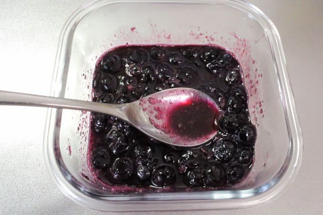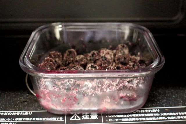 砂糖を混ぜた冷凍ブルーベリーを電子レンジで加熱します。