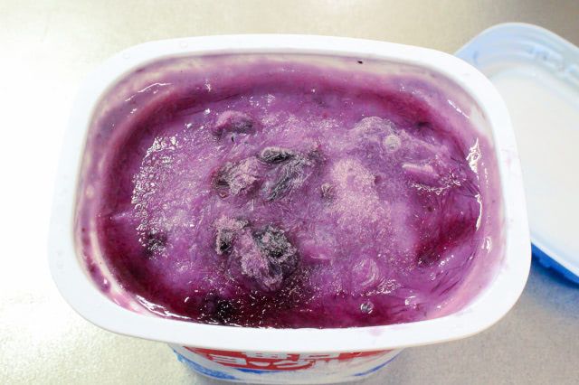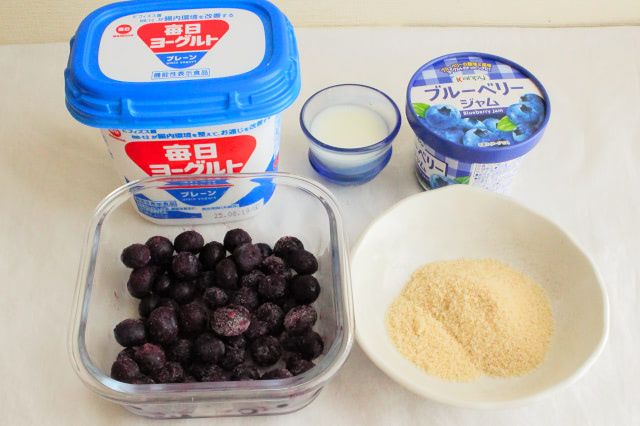 今回作る「ブルーベリーアイス」は、プレーンヨーグルトがベース。そこに冷凍ブルーベリー、砂糖、牛乳を加えて混ぜ、凍らせるだけの簡単レシピでした。