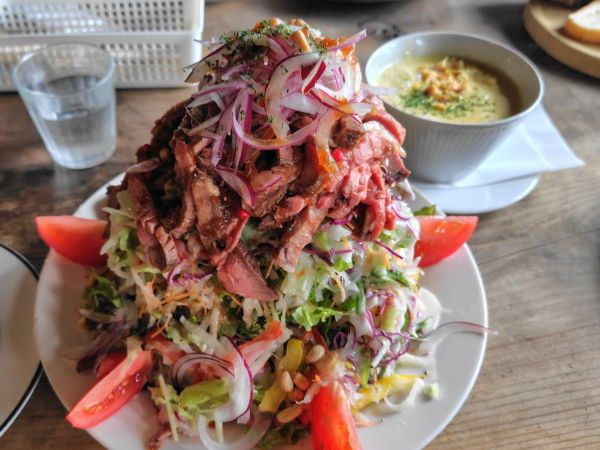 後日、友達と訪れた時に「この前のローストビーフが美味しかったので、今日のランチは、ローストビーフのサラダにしよう」と思ってオーダーしたところ、度肝を抜かれました。