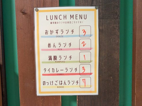 京阪枚方市駅直結の「ひらかたサンプラザ3号館」3階に大人気のお店があると聞いて行ってきました。ひらかたサンプラザ3号館の3階に行くのは初めて。お店は一番奥にありました。お昼の時間帯をすこしずらして行ったのに待ちのお客様が・・・予約しておいて良かったです。ランチメニューは、おかずランチ・めんランチ・満腹ランチ・タイカレーランチ・のっけごはんランチなどがあり週替わり、日替わりのものがあります。お店の前や、席に番号が書いてあり、メニュー内容を確認できます。