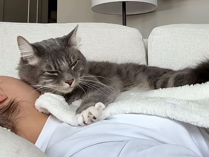 3. 「大丈夫だにゃ」落ち込む飼い主に寄り添うモフモフ猫さんの優しい仕草にほっこり