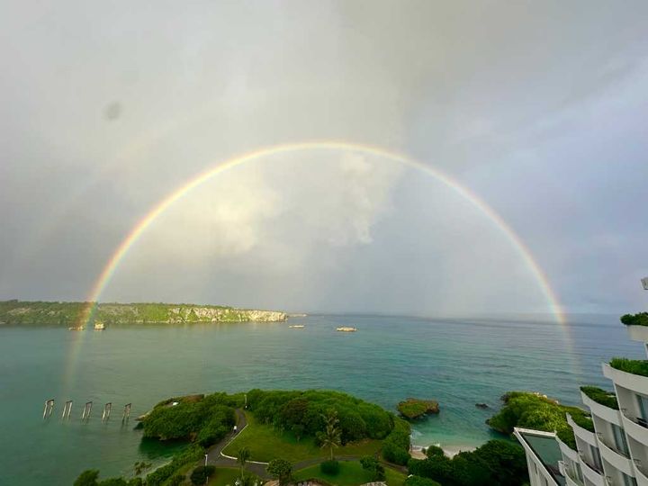 朝のダブルレインボー。お部屋のテラスから、こんなに綺麗に見ることができました!