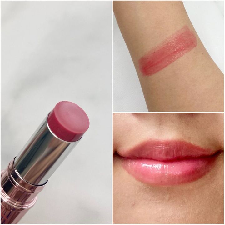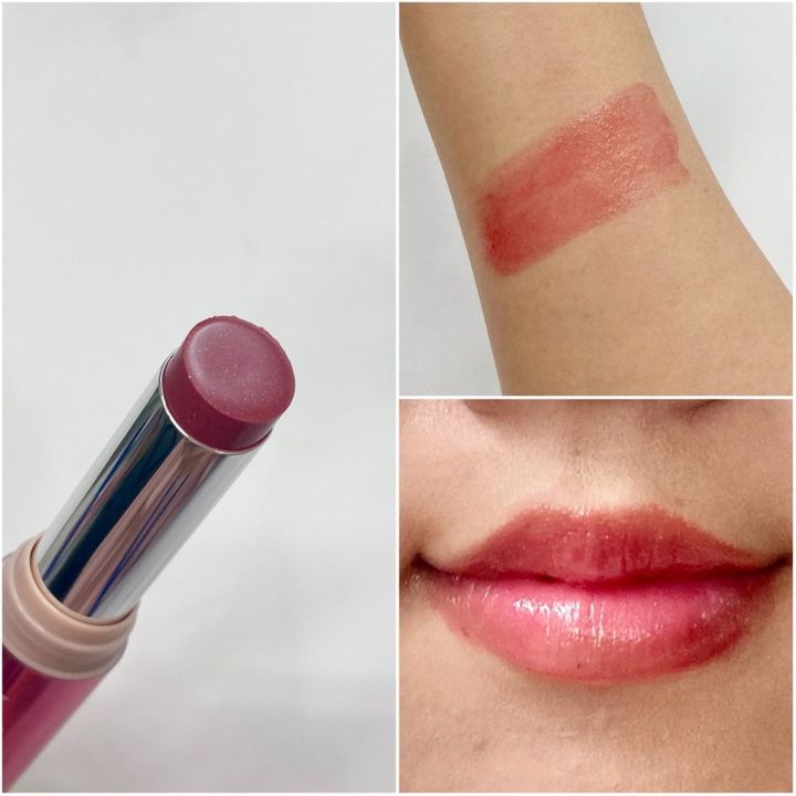 シアーな発色とぷるんしたツヤ感がたまらないティントリップ。肌になじみやすいローズカラーで自然な血色感をプラスしてくれます。単色使いはもちろん、他のリップの上からグロスとして使うのもオススメ。普段ピンクのリップをあまりしないというピンクリップ初心者でも使いやすいカラーです。