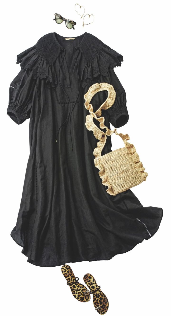 ワンピース¥47,300(カレンソロジー/カレンソロジー 二子玉川)バッグ¥12,100(ハウス オブ ロータス)靴¥49,500(イル サンダロ オブ カプリ/アマン)ピアス¥62,700(ヌゥ ユゥ/アイネックス)サングラス¥48,400{hlb}(プロポ/プロポデザイン)