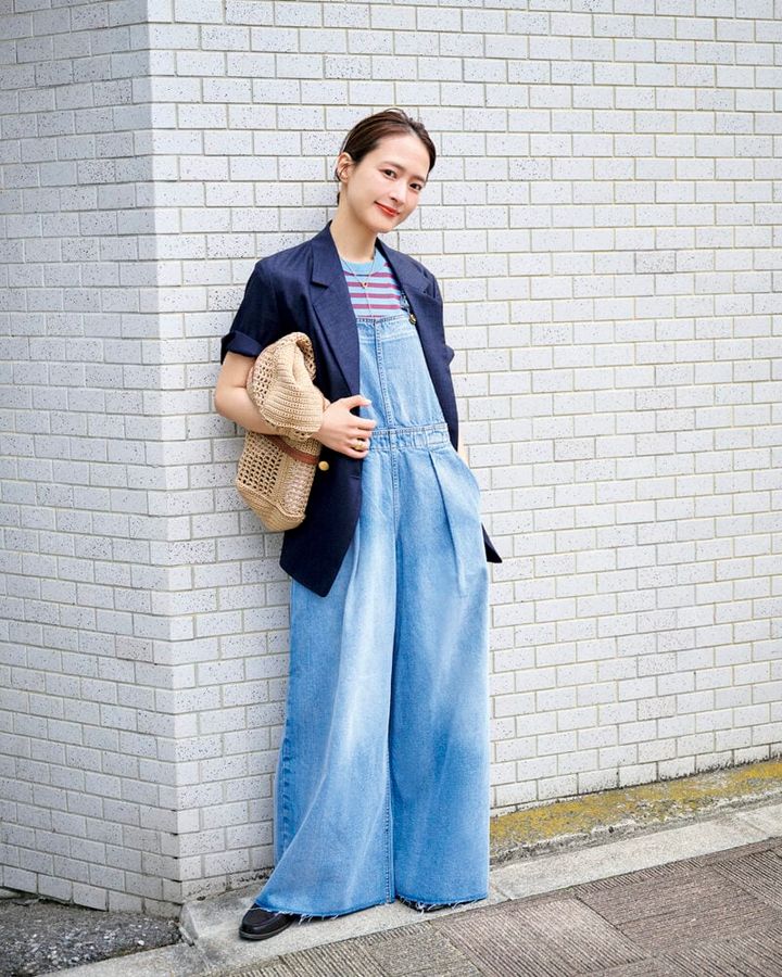 3. 【30代スナップ】ジャケット×オーバーオールの大人コーデ!トラッドな着こなしを参考に