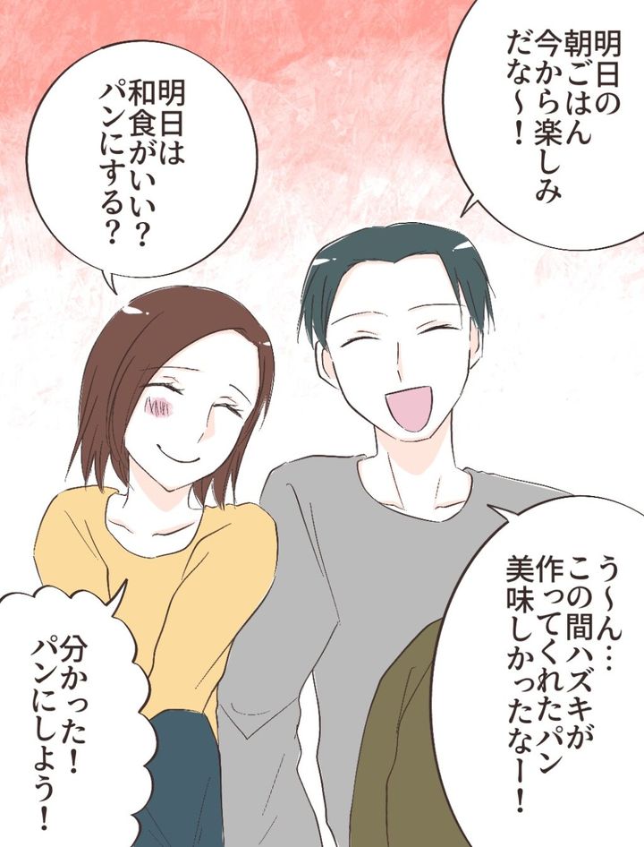 その後、「明日の朝ごはん、今から楽しみだな~!」そう言われ、「明日は和食がいい?パンにする?」と聞くと、「う~ん・・この間ハズキが作ってくれたパン美味しかったなー!」と思い出しながら言うリヒトさんに、「分かった!パンにしよう!」とはりきって答えました。