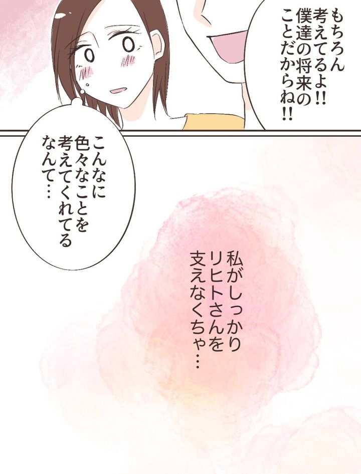 「もちろん考えてるよ!!僕たちの将来のことだからね!!」と言うリヒトさんのことを、「こんなに色々なことを考えてくれてるなんて・・私がしっかりリヒトさんを支えなくちゃ・・」と心に誓いました。