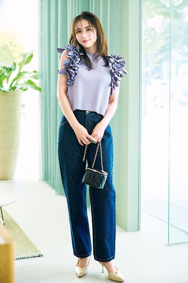 甘口トップスにしゃれた抜け感を与えるレディ向きデニム