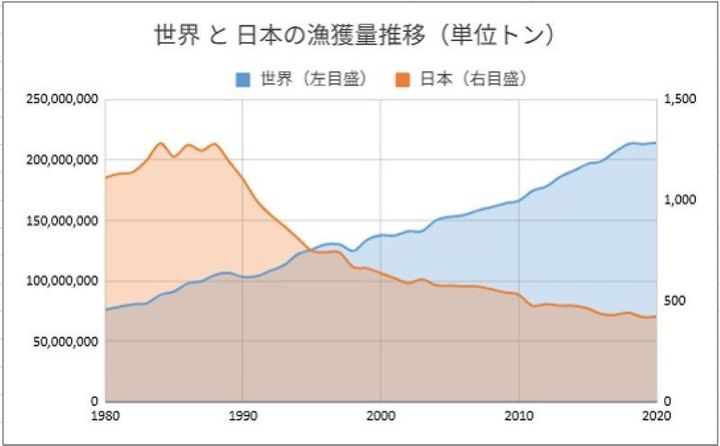 最近、「日本で漁獲量が減っている」というニュースを耳にすることがありますが、世界全体で見ると、漁獲量はむしろ増えているようです。
