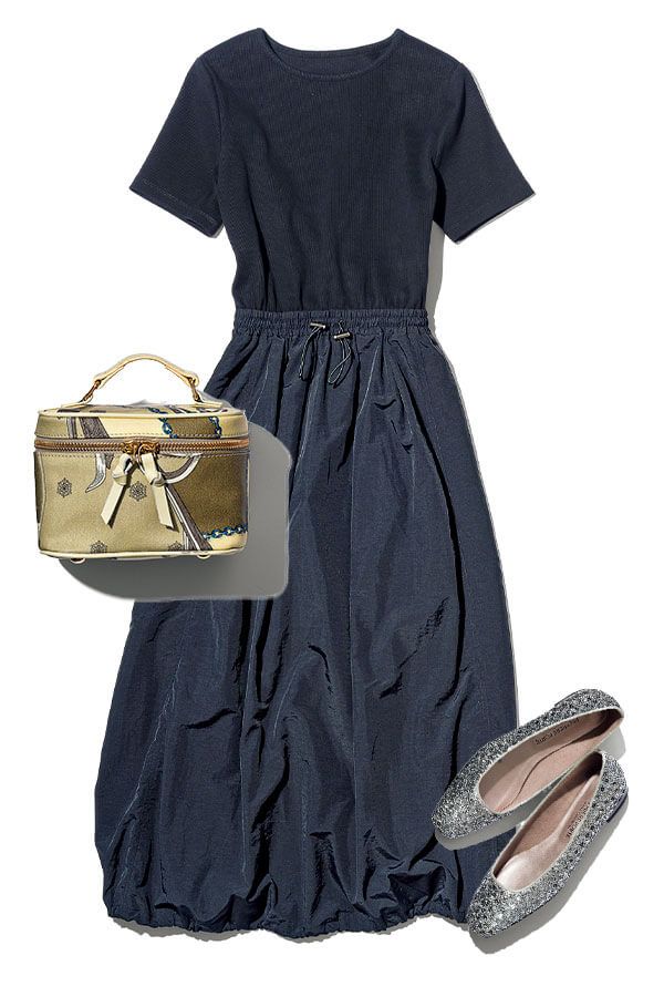 バッグ¥16,500/マニプリ 靴¥19,800/銀座かねまつ(銀座かねまつ6丁目本店) ワンピース¥5,489/オペーク ドット クリップ