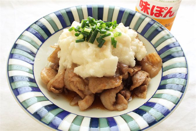 ミツカンの代表的な商品「味ぽん」。しょうゆ、かんきつ果汁、酢、塩などがおいしいバランスで配合された万能ぽん酢じょうゆです。ミツカンの公式SNSでは、この「味ぽん」を使った簡単レシピがたくさん紹介されています。今回は夏におすすめだという「雪山とろろ豚」に挑戦。「味ぽん」と砂糖で味付けした豚肉に、叩いた長芋を乗せたら完成という簡単さ。甘辛い豚肉にとろろの組み合わせは初めて!これはご飯が進みそう♪
