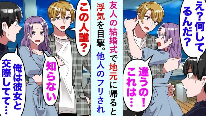 先輩の結婚式のため地元に帰ると、彼女が公園で男とハグ。声をかけると知らない人のふりをされ!?