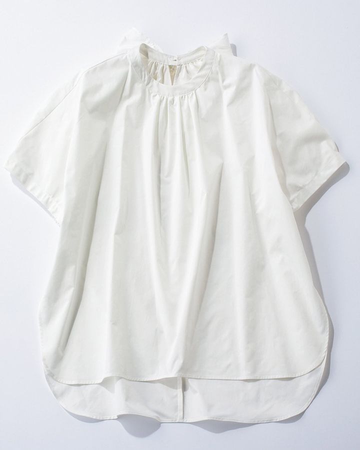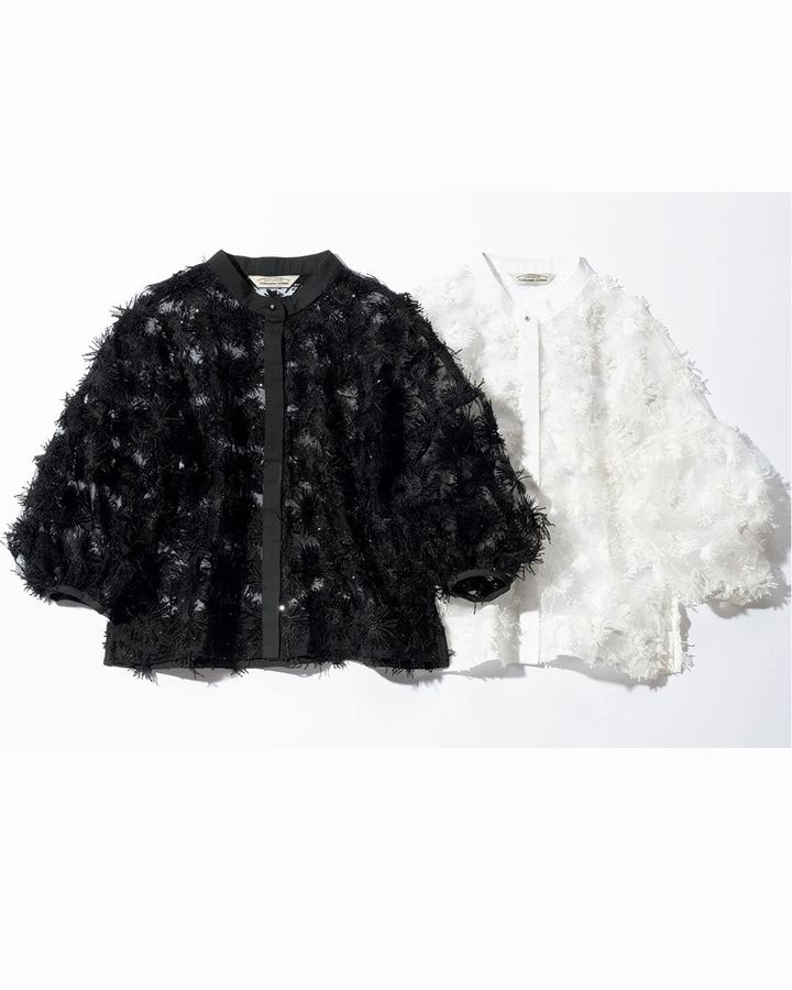ボタンを隠した比翼開きでスッキリと仕上げたブラウスは、ボタンを開けてハオリものとして着こなすと、ボウタイがジャケット衿風に見えるのもポイント。トレンドのシアー素材は、ONするだけでコーデを今っぽく仕上げてくれます。秋口もニットと重ねて、ジャケットのインナーにと活躍度大の心強いアイテムです。