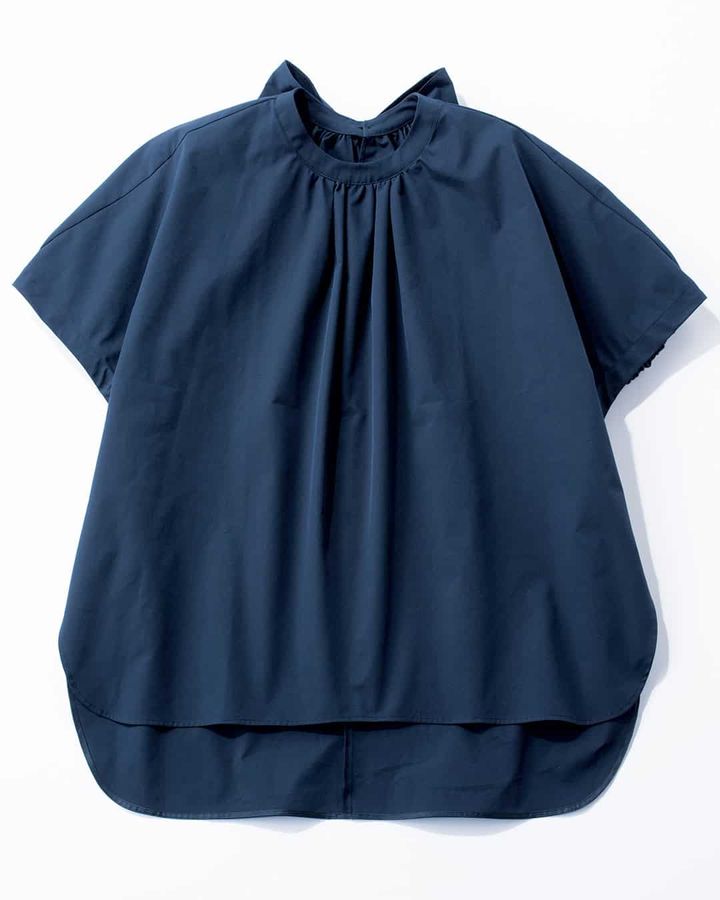 ネックラインはギャザーを取りクラス感を演出、後ろ姿の大きなリボンがポイントです。前後差がついているので、気になるヒップラインをしっかりカバーしてくれます。