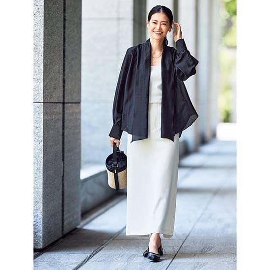 ②ブラウス⇔羽織りの「2WAY透けトップス」で秋まで着回し