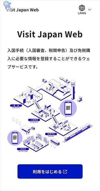 日本への入国手続(入国審査、税関申告)に利用すると、税関申告書などを記入する必要がなくなるウェブサービスです。日本人の場合、海外から帰国の際に必要な情報を事前に登録すれば、入国手続時にQRコードを提示するだけで、スムーズな入国手続ができます。