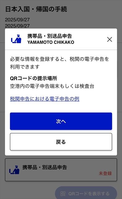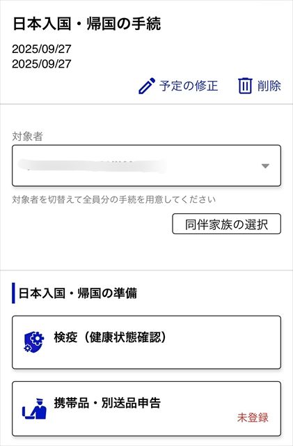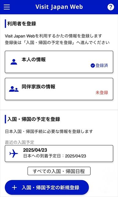 2回目以降は、この「入国・帰国の予定を登録」のみを入力すればOK。