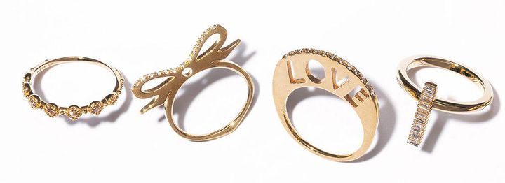 【左から】リング[K18]¥99,000(アガット)リング[K18×DIA]¥159,500リング[K10]¥198,000(ともにカラットアー/イセタンサローネ東京)リング[K18]¥352,000(ベルシオラ)