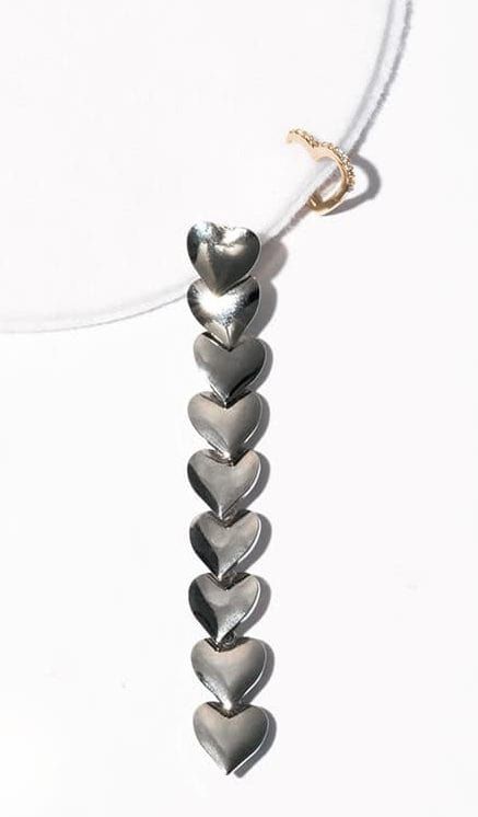 幼く見えがちなハートリンクも、繊細なイヤーアクセならぐっと洗練。