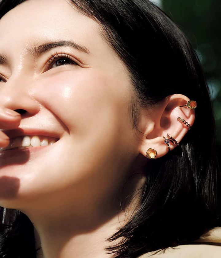 光を集め、視線を上げる耳元レイヤードは40代の強い味方。変化した肌感・骨格に寄り添う華奢デザインを選んで。(スタイリスト・竹村はま子さん)