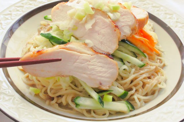 しっとり鶏チャーシュー+特製練りゴマだれ=ごちそう冷やし中華!
