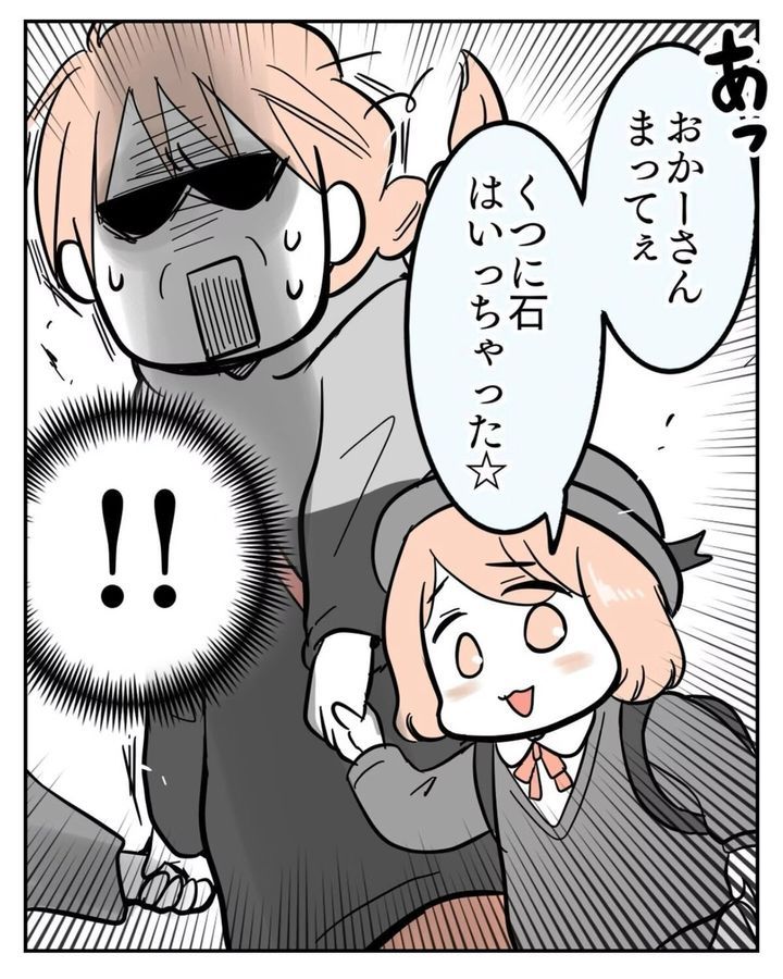 久しぶりに、ハイタッチおばさんと遭遇してしまいました。ですが、「すれ違うだけ」と思い、やり過ごそうと思っていたサヤさん。それなのに、「くつに石がはいった」と言い出した娘。