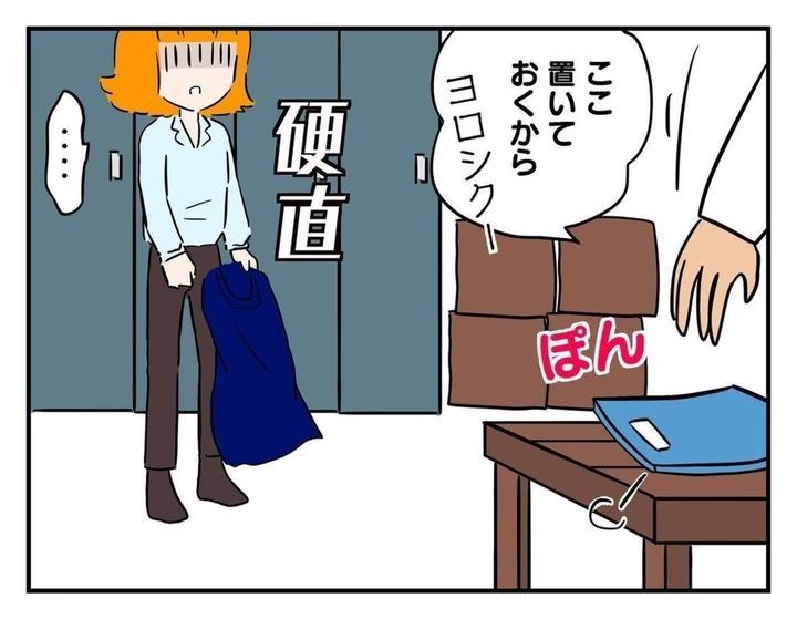 誕生日に差し入れをくれるやさしい店長。しかしマリエが着替え中の更衣室に、マリエからの返事を待つことなくズカズカと入ってきました。まだエプロンしか脱いでいないとはいえ、勝手に入ってきた店長に思わず固まってしまうマリエ。びっくりしますよね。