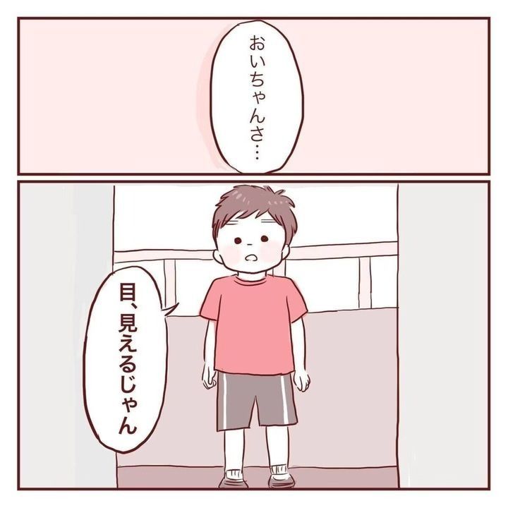 同じマンションに住み、おじさんのことを知っている様子の少年。去り際に言った「おじさんは目が見える」という言葉に、みほままさんは固まります。