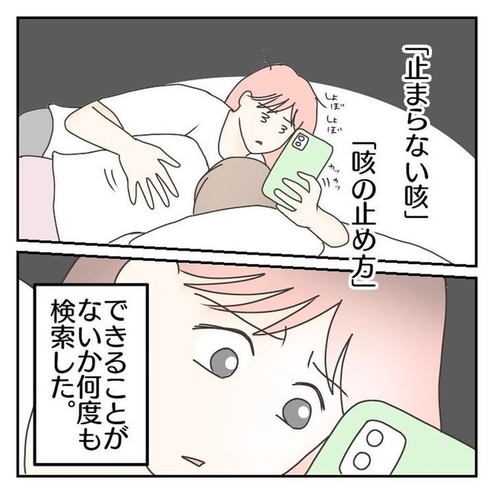 毎日毎晩せきで眠れない娘に我慢の限界が来て、「気にしすぎだよ」と怒鳴ってしまったねこじまいもみさん。イライラしてしまう気持ちもとてもよくわかりますよね。しかしつらいのは本人も同じ。このままだと親子関係がどんどん悪化してしまいそうです。