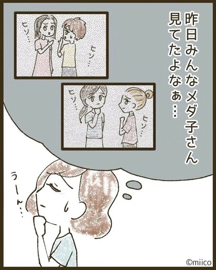 皆さん、初めてできたママ友はどんな方ですか?このお話は、作者・みぃ子😇ときどきためになる絵日記(@miico_no_kurashi)さんの体験談を元に、初めてのこども園で出会った、強烈なママ友について描いています。主人公・のんちゃんママさんは、メダ子とママ友になりますが、メダ子はSNSに他の人も映り込んだ写真をたくさん投稿していて…。『とにかく目立ちたいママ友が怖い。』第12話をごらんください。
