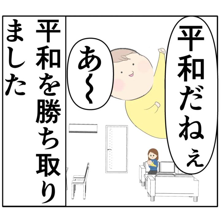 「平和だねぇ」と抱っこしているトウマくんに話しかけました。