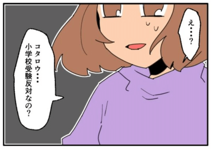 ハルミは、コウキの将来を考えて、できるだけ早くしっかりとした教育を受けさせるべきだと考え、息子に小学校受験をさせたいと言い出しました。それに対して、コタロウはしばらく悩んだあと、「俺は反対だ」と答えました。