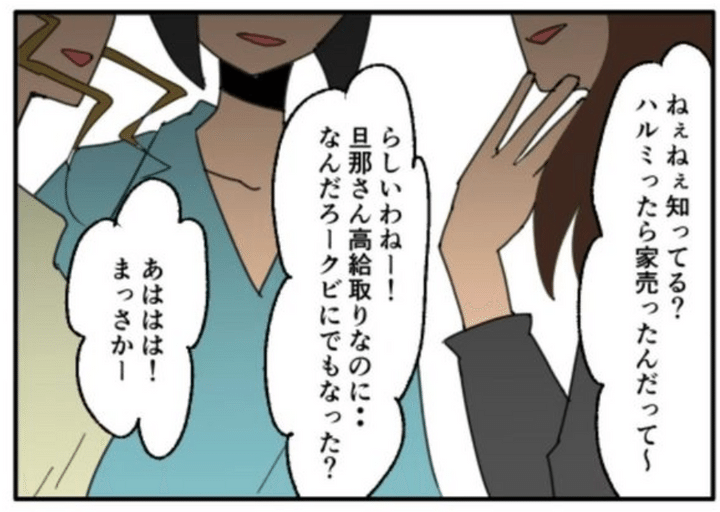 この漫画は、著者・音坂ミミコ(@otosakamimiko)さんの友人・三重崎一家が念願だったマイホームを手に入れるも、妻・ハルミが見栄のために散財してしまい、わずか数年でマイホームを手放すまでを描いています。『新興住宅地で見栄を張りすぎた話』第75話をごらんください。