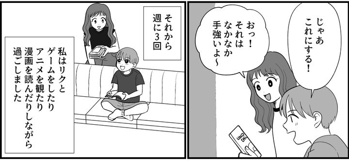 私は午後にやる仕事の量を減らして、リクと一緒にゲームをしたり、アニメを観たり、漫画を読んだりしながら過ごしました。一緒の時間を過ごすなかでリクからこんなことを言われました。
