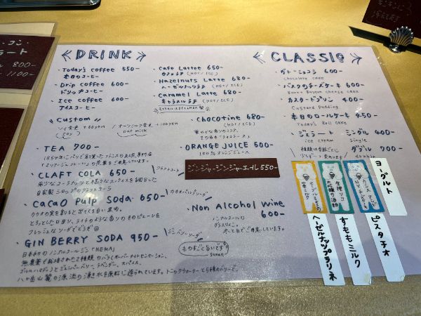 ドリンクは定番のコーヒーメニューや紅茶、ソフトドリンクの他に、自家製シロップのクラフトコーラ、カカオの果肉を使用したカカオパルプソーダ、ノンアルコールのカクテルやワインなどもありました。 コーヒーは中区本川町の「ARCHIVE COFFEE ROASTERS」が焙煎したコーヒー豆を使用しているそう。テイクアウトもできます。