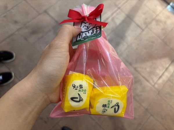 今回のイベントが夏のイベントということで、期間限定の日向夏味の鶴乃子を写真のように2つラッピングすることができます。