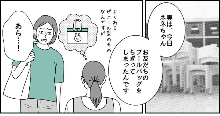 <弁償するべき?>娘が壊してしまったお友だちのプールバッグ。弁償するのは当たり前?【まんが】