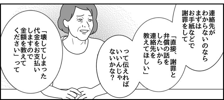 故意ではなくてもネネが壊してしまったので、弁償をする旨は理解しました。しかし、相手のご意向をうかがうべきではないでしょうか? 弁償をしてほしいのか、直すのか、他のものを買うから現金がいいのか……。