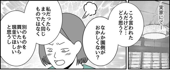 先生はきっぱりと「同じものを探して弁償するべきです」と、言いました。今まで通っていた園の方針とは違い、私は戸惑ってしまいました。実家に行き、実母に相談してみると……。