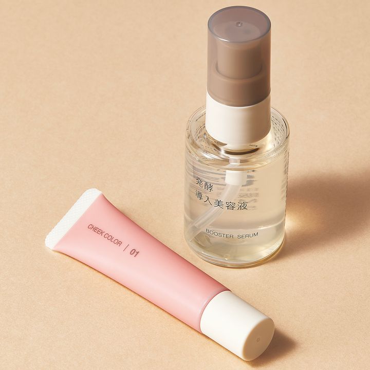 右・山形産米ぬか発酵液を配合した導入美容液。もっちりハリのある肌に。無印良品 発酵導入美容液¥1,990