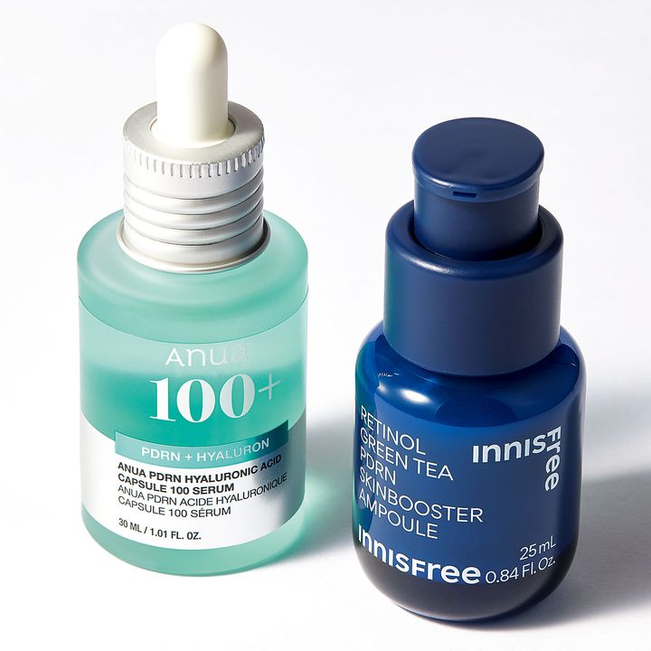 左・PDRN、ヒアルロン酸、コラーゲンを配合した保湿美容液。Anua PDRNヒアルロン酸カプセル100セラム ¥3,450(Anua)