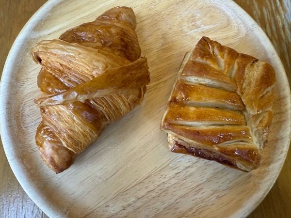 私は佐賀牛サンド。子供達は林檎のパイとクロワッサン、そして山ブドウのリュスティックに三日月を選びました。
