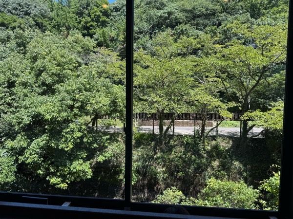 店内は自然光が穏やかに降り注ぎ、席からは、森と龍門峡からの清流を一望できます。見ているだけで涼しげなこの景色で目の保養をした後で、飲み物の注文です。