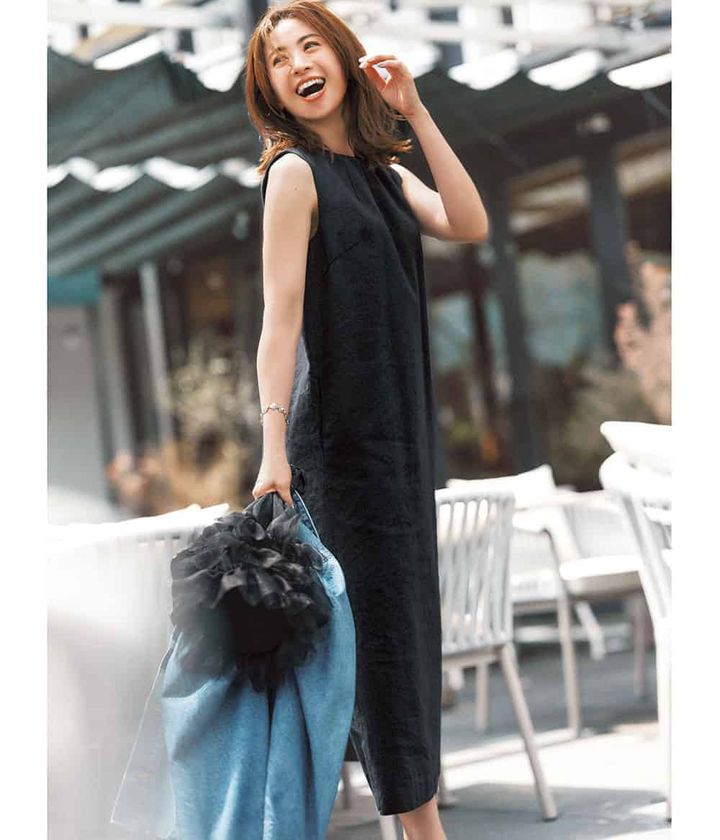 ワンピース¥42,900(ロンハーマン)ジャケット¥34,100(ホリデイ/フラッグシップサロン オフィス)バッグ¥7,480(バーセルフ)ピアス¥41,800リング¥82,500ブレスレット¥68,200(すべてノアーク/ノウン)