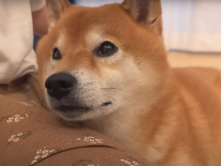 柴犬のハチさんは不安そうな表情を浮かべていました。