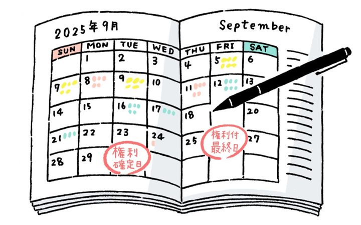 例えば、2025年9月30日が「権利確定日」の場合、9月26日が「権利付最終日」となります。