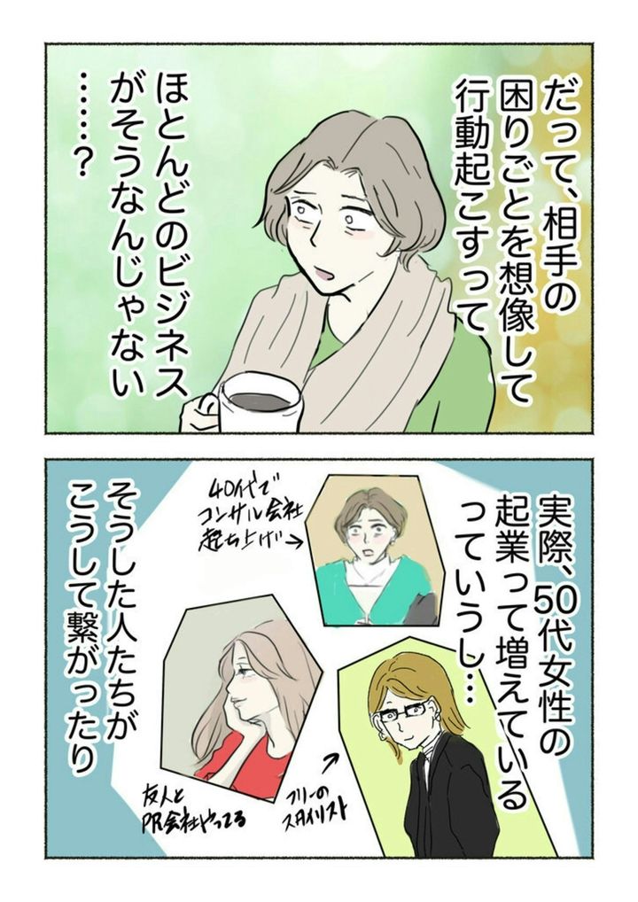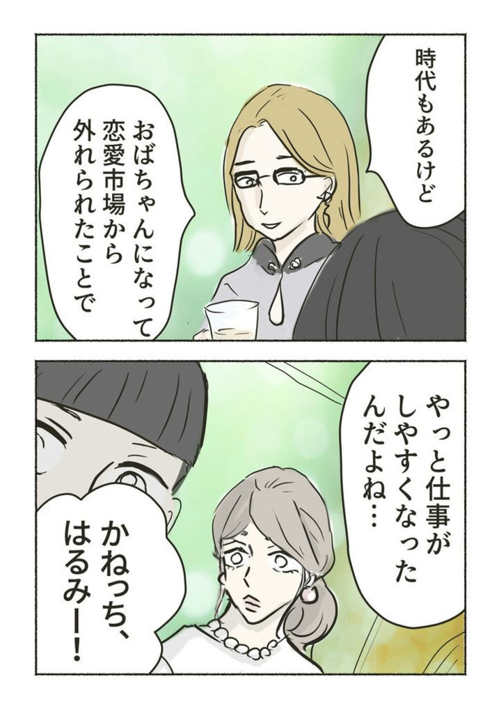 みかこははるみからの紹介で、年上の女性たちと知り合う機会があり、そこで「おばちゃん」という意味に込められた社会的な意味や、自分自身の偏見に気づき、本当に伸びやかに生きるには?ということを考え始めます。そうした中で「おばちゃん」という年齢まで年を重ねるということは、人生経験をもとに他者へ思いやりの目線を向けられるようになることでは?と思うのですが…?