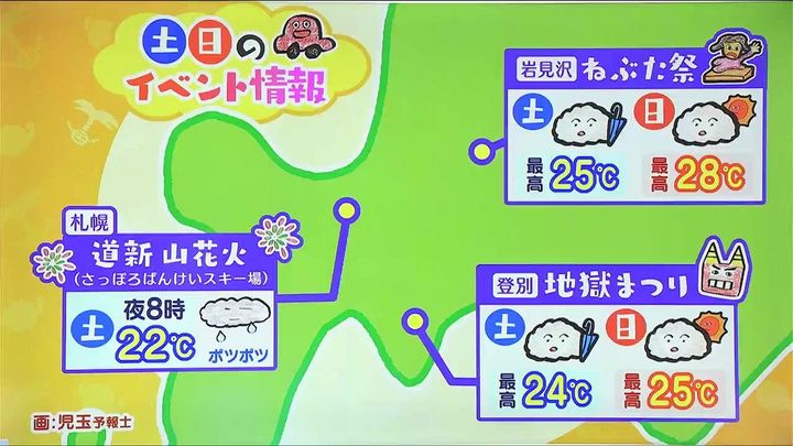 HBCテレビ「今日ドキッ!」の番組内でも独特(?)なイラストを使って天気をお伝えしています。